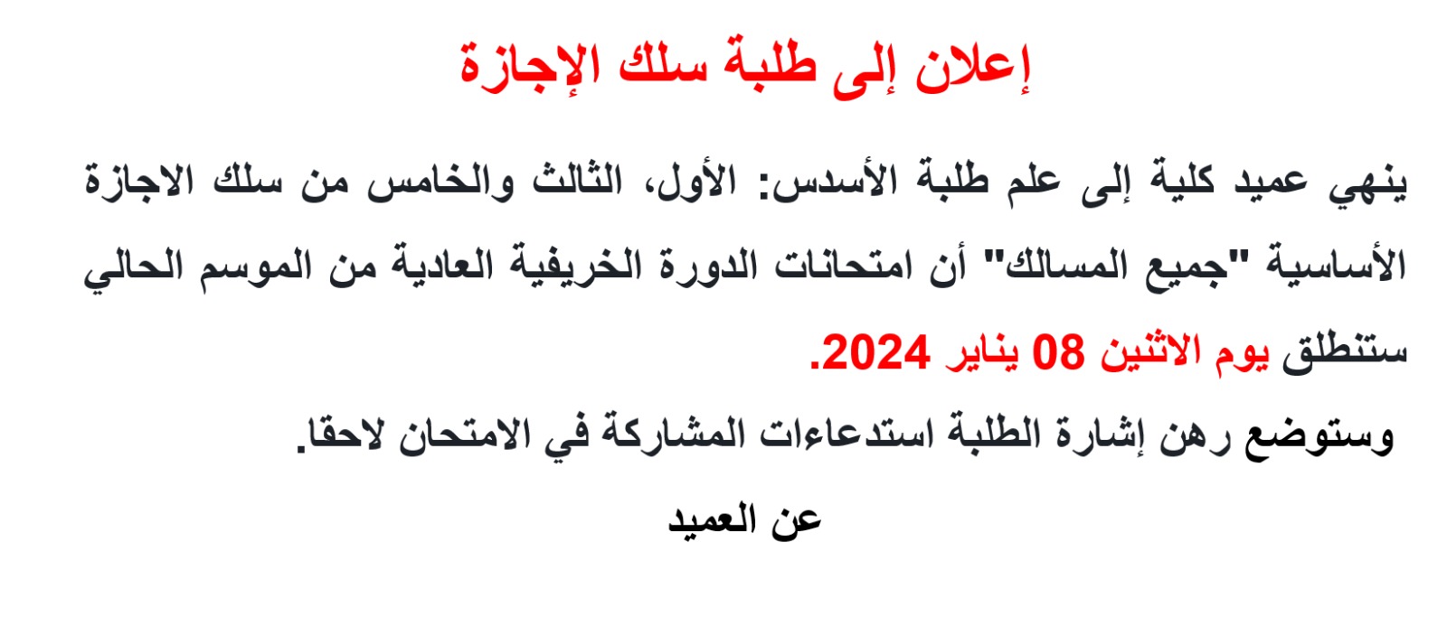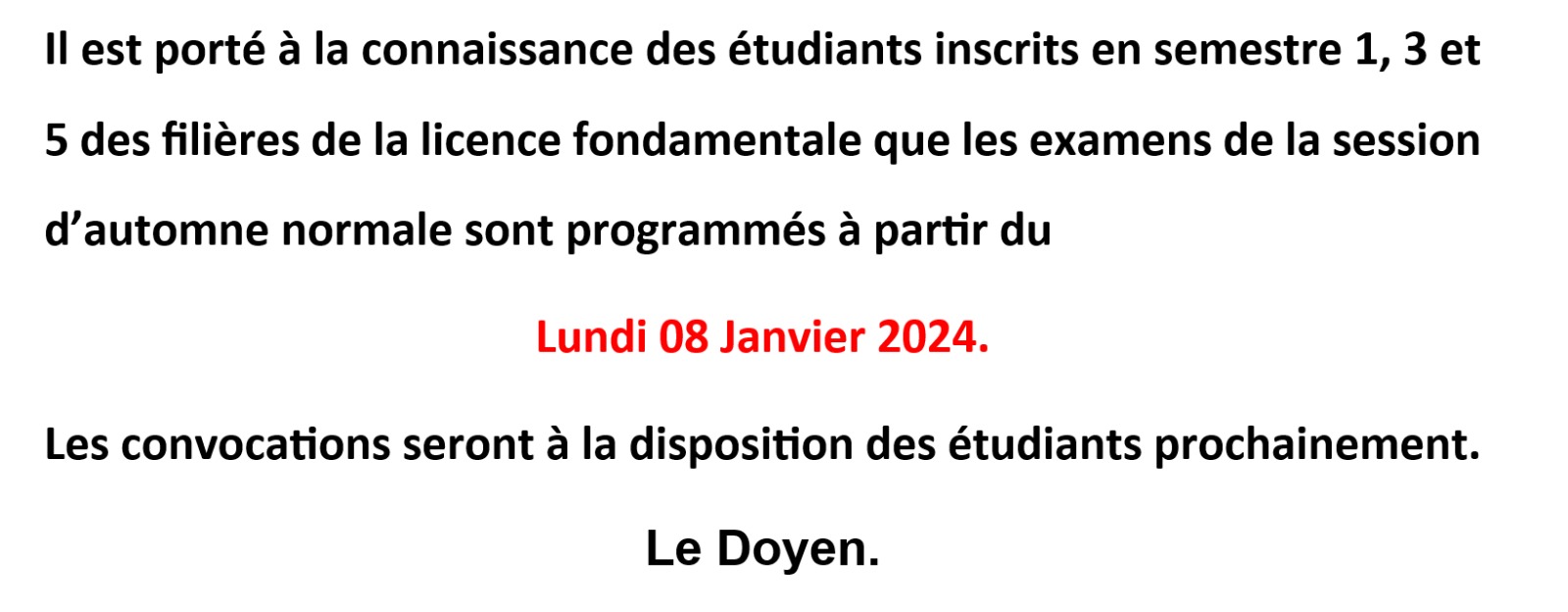 Dans le cadre de la nouvelle réforme et pour un meilleur déroulement des examens, les étudiant.e.s du semestre 1 sont tenu.e.s de s'inscrire préalablement à l'examen de la session d'automne via le lien suivant :