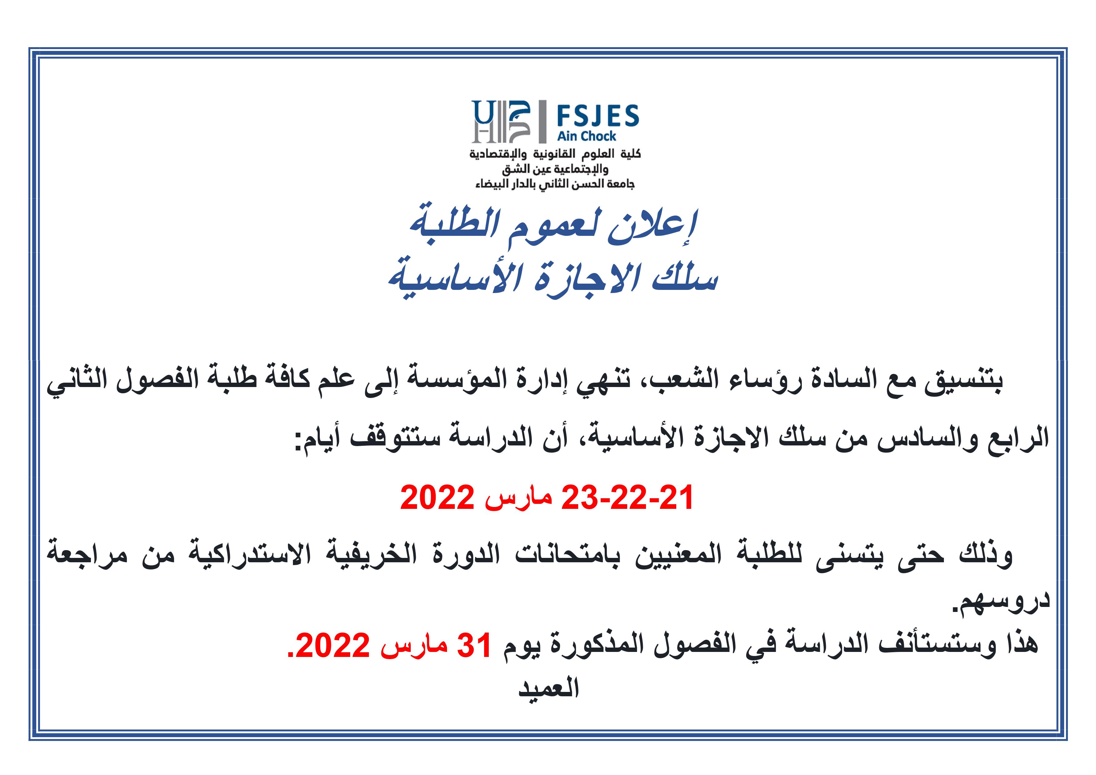 NB : Les réclamations sont ouvertes sur la plateforme E-talib " cliquez ici" , s dans un délai de 48 heures . Vous devez préciser le module et l'objet de votre réclamation dans le type Réclamation : "Les notes (Bachelor)" .